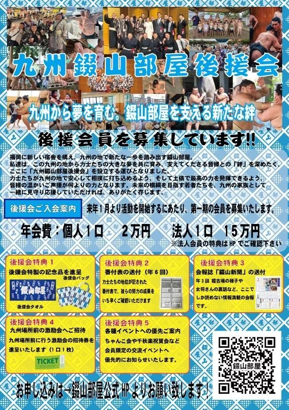 力士たちが九州の地で安心して相撲に打ち込めるよう、そして土俵で最高の力を発揮できるよう、皆様の温かいご声援が何よりの力となります。